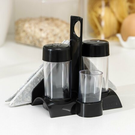 В комплект входят 3 предмета: две прозрачные баночки с крышками для специй, емкость для зубочисток и подставка для салфеток. Набор для специй выполнен из прочного и качественного пластика, что гарантирует его долговечность и надежность. Благодаря черному цвету, набор будет гармонично смотреться на любом столе и придаст ему солидный вид. Компактные размеры набора для кухни позволяют экономить место на обеденном столе, при этом сохраняя функциональность и удобство использования. Кухонный набор легко моется и может быть помещен в посудомоечную машину, что делает его удобным в использовании и уходе.