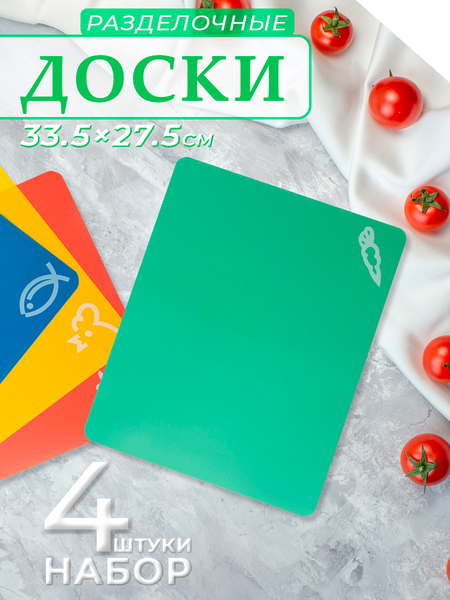 Набор досок разделочных, гибких, прямоугольных, 4 шт, 34,5×27,5×0,1 см