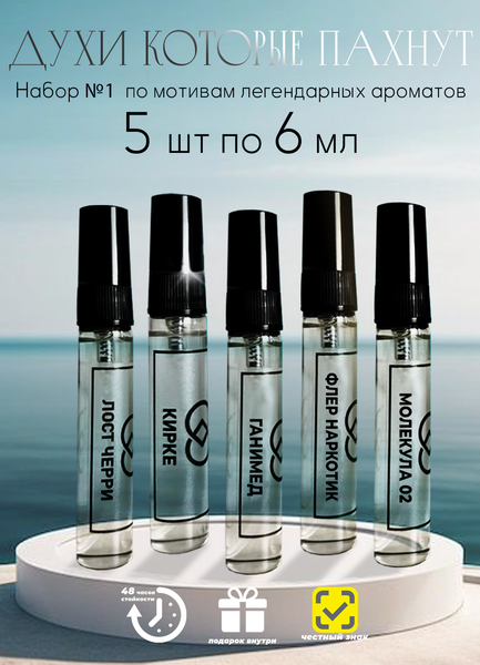 Набор мини-духов №1 включает в себя 5 флаконов объёмом 6 мл каждый. В них представлены парфюмерные композиции, вдохновлённые популярными селективными ароматами. В составе набора - духи, созданные по мотивам легендарных ароматов : -Molecules 02 -Kirke -Fleur Narcotique -Lost Cherry -Ganymede. Масляные духи, входящие в набор, отличаются высокой стойкостью и оставляют после себя приятный аромат. Флаконы имеют удобный объем 6 мл и оснащены дозаторами, что позволяет легко носить их с собой и использовать в любое время. Ароматы, представленные в наборе, подойдут для любого случая и подчеркнут вашу индивидуальность. В наборе духов вы найдете сладкие, цитрусовые, ванильные и фруктовые ноты, а также древесные и восточные оттенки. Набор духов №1 также может служить отличным подарком для женщин и мужчин. Флаконы упакованы в крафтовую упаковку с приятным презентом внутри, что делает их отличным выбором для любого праздника, включая Новый год, день рождения, 8 Марта, 23 Февраля, День матери и годовщину свадьбы. Для достижения наилучшего результата рекомендуется наносить духи на пульсирующие участки тела, такие как шея, запястья или локтевые сгибы. Флакон прекрасно сохраняет аромат, и вы будете приятно удивлены вниманием окружающих. Приобретая парфюмерный набор №1, вы делаете инвестицию в свою индивидуальность и уверенность. Будьте желанны на уровне подсознания с этим набором пробников! Вот несколько лайфхаков, чтобы продлить стойкость парфюма: 1. Наносить на места, где пульсирует кровь: на мочки ушей, запястья, локтевой сгиб, во впадину над ключицей и на сгиб колена. 2. Не растирайте место, куда только что побрызгали. 3. Не стоит наносить на места обильного потоотделения: запах духов будет смешиваться с запахом пота. 4. Нанести парфюм на волосы. Кожа головы вырабатывает себум, а он представляет собой отличную базу для нанесения. Более того, голова постоянно в движении, и запах хорошо рассеивается. 4. Наносить духи сразу после душа. Распаренная кожа хорошо впитывает аромат. 5. Не хранить духи в ванной. Во влажной среде они быстро теряют свои качества. 6. Рекомендуем хранить духи в прохладном и темном месте.