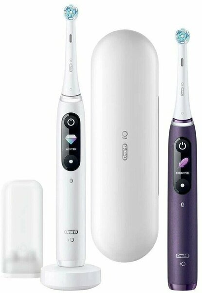 Электрическая зубная щетка Oral-B iO8 Duo - это современное и эффективное устройство для проведения гигиенических процедур. Она предназначена для взрослых и имеет пять режимов работы, включая массаж, деликатную чистку, уход за деснами, отбеливание и ежедневную чистку. Особенностью данной модели является наличие таймера, который оповещает пользователя об окончании процедуры с помощью звукового сигнала. Это позволяет контролировать время чистки и обеспечивает более тщательную очистку. Устройство оснащено аккумулятором, который обеспечивает автономную работу в течение 48 часов. Благодаря индикатору зарядки, вы всегда будете знать, когда необходимо зарядить щетку. Управление щеткой возможно с помощью смартфона, для этого необходимо загрузить специальное приложение Oral-B. Корпус щетки изготовлен из высококачественного пластика, устойчивого к механическим повреждениям и деформации. В комплект входят две стандартные насадки, дорожный футляр, зарядное устройство и инструкция по эксплуатации. Электрическая зубная щетка Oral-B iO8 Duo - это надежный и удобный инструмент для поддержания здоровья и белизны вашей улыбки.