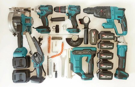 Представляем вашему вниманию уникальный «Набор аккумуляторного инструмента 7 в 1 с шестью АКБ» — идеальное решение для профессионалов и домашних мастеров. Этот универсальный набор для выполнения различных задач включает в себя все необходимые инструменты, позволяя вам справляться с любыми ремонтными и строительными работами с максимальной эффективностью. Комплектация набора включает в себя: перфоратор, гайковерт, шуруповерт, болгарку, цепную пилу, циркулярную пилу и нейлер. Все эти инструменты помещены в один удобный кейс, что позволяет легко транспортировать и хранить их в одном месте. Такой подход обеспечивает порядок и экономит ваше время. Перфоратор обладает мощностью, достаточной для сверления бетона и кирпича, что делает его незаменимым при выполнении строительных работ. Гайковерт справляется с закручиванием и откручиванием гаек и болтов, что особенно полезно при сборке мебели и монтаже конструкций. Шуруповерт идеально подходит для работы с деревянными и металлическими поверхностями, обеспечивая точность и надежность креплений. Болгарка поможет вам легко резать и шлифовать металл и камень, а цепная пила справится с распилом древесины любой плотности. Циркулярная пила обеспечит точные и ровные распилы, а нейлер станет незаменимым помощником при монтаже и работе в труднодоступных местах. Все инструменты в наборе оснащены современными бесщеточными моторами, что значительно увеличивает их срок службы и снижает уровень шума и вибрации. Бесщеточный набор отличается высокой производительностью и надежностью, что особенно важно при интенсивном использовании. Набор включает в себя 6 аккумуляторов по 6Ач и 2 зарядки, что обеспечивает продолжительную автономную работу. Вы сможете работать без перерывов, просто заменяя разряженные аккумуляторы на заряженные. Это особенно удобно на удаленных объектах, где нет возможности подключиться к сети. Оснастка, входящая в комплект, позволяет сразу приступить к работе, не тратя время на поиск дополнительных аксессуаров. Все инструменты и аксессуары легко и быстро монтируются и демонтируются, что делает работу с набором максимально удобной и быстрой. Выбирая «Набор аккумуляторного инструмента 7 в 1 с шестью АКБ», вы получаете надежного и универсального помощника, который справится с любыми задачами. Этот набор станет отличным дополнением к вашему арсеналу инструментов, обеспечивая высокое качество и комфорт в работе.