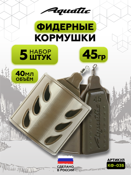 Набор фидерных кормушек 5 штук 45 гр 40 мл Aquatic DROP FEEDER - это прочная пластиковая кормушка для ловли фидером, которая легко выматывается и быстро всплывает. Предназначена для ловли на водоемах со слабым или средним течение, на небольших и средних дистанциях. Подходит для ловли карася, леща, карпа, уклейки и плотвы. Такие фидерные кормушки рекомендуется применять в тех случаях, когда необходимо легкое выматывание кормушки (например, при скоростной ловле), относительно быстрое всплытие кормушки (при ловле за небольшими бровками, травой и другими препятствиями). Рыболовная кормушка подходит как для ловли в темпе, так и для облегченной ловли. Сплошной корпус с небольшими отверстиями в форме капли позволяет прикормке вымываться не сразу, отдавая частицы в воду постепенно. Можно использовать как карповый монтаж и вместо убийцы карася. Плоский груз кормушки для фидера надежно закреплен в корпусе, но может быть заменен на другой в случае необходимости. На нижнюю часть груза нанесена маркировка веса. Корпус изготовлен из прочного пластика, не имеет конусности, что также снижает сопротивление в воде. Подходит для ловли на донки на летней и зимней рыбалке. Кормушка для рыбалки оснащена вертлюжком, который препятствует закручиванию основной лески или шнура в оснастки. Отличный подарочный набор для рыбака.