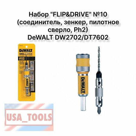 Фирменный магнитный держатель с насадкой с двумя наконечниками DeWALT DW2702/DT7602 для дрели-шуруповерта. На каждый наконечник можно поставить любое сверло или биту, а в процессе работы легко повернуть насадку для быстрого доступа к необходимой принадлежности. Данный набор помогает намного сэкономить время при работе когда идет сочетание: сверление отверстий и заворачивание шурупов. Двухсторонняя насадка DeWalt DW2702/DT7602 применяется для сверления и заворачивания саморезов. Подходит для использования в твердой и мягкой древесине, композитных материалах и МДФ. В комплекте: насадка Ph2, пилотное сверло №10, система быстрой смены между сверлением и заворачиванием. Комплектация DeWALT DW2702/DT7602: