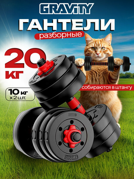 Набор гантелей разборных с грифом для штанги Gravity (TBRBL)Набор гантелей-трансформеров с грифом для штанги от бренда Gravity – незаменимый инструмент для разнообразных силовых упражнений и поддержания отличной физической формы. Он обеспечивает комфорт и надежность для тренировок в любом месте, позволяя эффективно развивать и укреплять мышцы всего тела. Все элементы данного набора изготовлены из высококачественных материалов, гарантирующих уникальную прочность и долговечность снарядов. Разнообразие весов, предоставляемых в комплекте, и два варианта конфигурации (гантели или штанга) дарят пользователям широкий спектр нагрузок, которые легко подстраиваются под индивидуальные потребности. Удобные размеры гантелей и грифа делают этот набор подходящим для использования людьми любой комплекции. • Многофункциональность: Комплект включает в себя гриф, позволяющий превратить гантели в полноценную штангу. Это расширяет спектр упражнений, которые вы можете выполнять с помощью этого набора, и делает ваши домашние тренировки разнообразнее и эффективнее.• Регулируемый вес: Набор включает в себя диски с различными вариантами веса, что делает его идеальным инструментом для тренировок всех членов семьи. Вы можете быстро настроить нагрузку в соответствии с вашими тренировочными потребностями. Это отличное решение как для начинающих, так и для опытных спортсменов.• Материалы высокого качества: Диски гантелей изготовлены из прочного ПВХ с цементным наполнителем, обеспечивая надежность снаряда и долгий срок службы. Удобные рукоятки с насечкой и гриф с мягким покрытием дарят дополнительный комфорт во время тренировок.