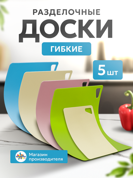 Набор разделочных досок SparkPlast - это практичный и функциональный аксессуар для вашей кухни. В комплект входят 5 гибких разделочных досок размером 34х24 см и 24x17 см, что позволяет использовать их для различных видов продуктов. Доски изготовлены из высококачественного пластика, который не содержит бисфенол и обладает высокой прочностью и стойкостью к механическим воздействиям. Благодаря своей гибкости, доски позволяют удобно высыпать нарезанные продукты, предотвращая их просыпание. Упругое покрытие досок не подвержено износу, истиранию и расслаиванию, а также химически устойчиво. Оно не затупляет ножи и не способствует распространению бактерий. Доски не впитывают запахи и легко моются, что делает их отличным выбором для тех, кто ценит гигиеничность и удобство. Для удобства использования и хранения предусмотрена специальная ручка, которая практически не занимает полезную площадь изделия. Доски выполнены в приятной цветовой гамме и разделены по цветам для нарезки различных продуктов. Доски можно мыть в посудомоечной машине, что значительно упрощает процесс уборки после использования. Вся продукция SparkPlast сертифицирована и соответствует высоким стандартам качества. Набор разделочных досок SparkPlast станет незаменимым помощником на вашей кухне и обеспечит комфорт и безопасность при приготовлении пищи.