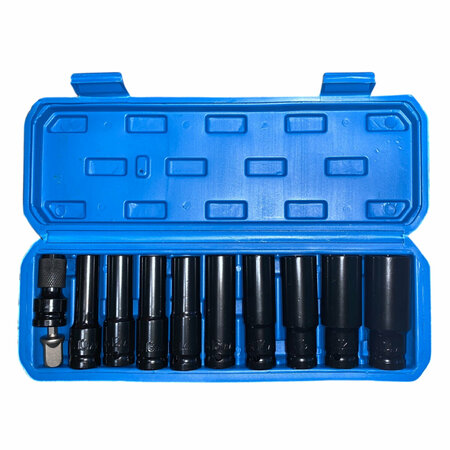 Размеры головок — 10, 12, 13, 14, 16, 17, 19, 22, 24 мм + адаптер для электрического ключа от четырехгранника к шестиграннику