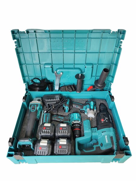Набор инструментов аккумуляторных 4 предмета (ушм, перфоратор, шуруповерт, гайковерт) 2АКБ 20V 4Ah - это комплект из четырех электроинструментов, предназначенных для выполнения различных задач по резке, шлифовке, сверлению и закручиванию. УШМ-болгарка с бесщеточным двигателем и регулировкой оборотов, гайковерт с бесщеточным двигателем, подсветкой и максимальным крутящим моментом 300 Нм, перфоратор с бесщеточным двигателем и частотой вращения 1200 об/мин, а также дрель-шуруповерт с быстрозажимным патроном и подсветкой. Все инструменты работают от аккумуляторов напряжением 18 В и емкостью 4 Ач. В комплекте идут 4 аккумулятора Li-Ion типа, зарядное устройство-слайдер и кейс для удобства хранения и транспортировки. Набор инструментов "4 в 1" TZ-152 - это удобный и практичный выбор для тех, кто ищет надежный и многофункциональный инструмент для выполнения различных работ.