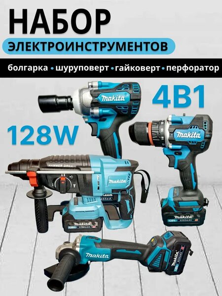 Набор аккумуляторных электроинструментов для дома и строительно-ремонтных работ: перфоратор, гайковерт, шуруповерт, болгарка (УШМ) в противоударном кейсе-чемодане. Представленный комплект включает в себя самые распространенные и ходовые инструменты, необходимые для проведения строительных, автомобильных, ремонтных, монтажных, столярных, слесарных, сантехнических, электромонтажных и иных работ. Компактный кейс-чемодан позволит комфортно перевозить и хранить инструментарий. Высококачественный материал, бесщеточный двигатель обеспечивают высокую износостойкость и долговечность электроинструментов. Каждый инструмент с удобными прорезиненными ручками. Встроенная система защиты от перегрузки для безопасной эксплуатации. Светодиодная подсветка для возможности выполнения работ в условиях слабого освещения. Болгарка с легкостью справится с зачисткой сварочных швов, удалением ржавчины, резкой, шлифовкой, полировкой различных поверхностей и материалов благодаря бесщеточному двигателю, обеспечивающему скорость вращения до 9000 оборотов в минуту. Диаметр диска 125 мм. Дрель-шуруповерт с бесщеточным двигателем предназначен для эффективного и максимально быстрого закручивания (выкручивания), извлечения крепежных элементов, сверления отверстий на различных поверхностях, а также долбления (отлично подходит для зимней рыбалки). Гайковерт новейшего поколения на бесщеточном двигателе используется для закручивания и откручивания гаек и винтов, для сверления отверстий в стенах. Частота вращений 2200 оборотов в минуту, число ударов - 3200 в минуту, крутящий момент - 330 Нм. Перфоратор дает возможность эффективно, быстро и точно сверлить, долбить, бурить. Диаметр бура 26 мм. Представленный набор инструментов необходим на даче, в квартире, в доме, в гараже, в мастерской и подходит для мастеров-любителей, а также профессионалов, занимающихся, в том числе, сборкой мебели, ремонтом, строительством. Станет идеальным подарком для мужа, брата, дяди на новый год, день рождения,23 февраля. Подарок папе на Новый год