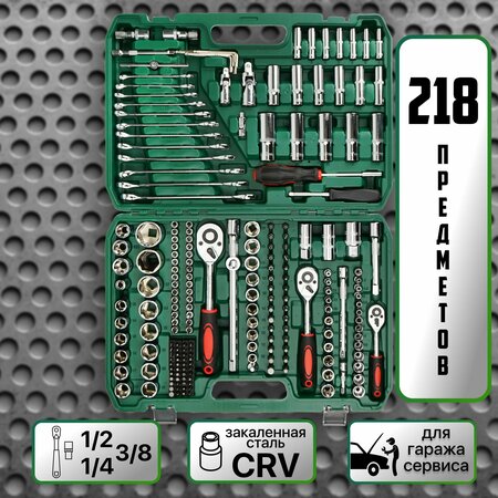 Набор инструментов для автомобиля 218 предметов - это незаменимый помощник для каждого автовладельца, автомеханика и любителя автомобилей. В комплект входят 218 различных предметов, включая головки, ключи, отвертки, пассатижи, ножницы, молоток и другие инструменты. Все инструменты упакованы в удобный и портативный кейс, который обеспечивает компактность и удобство использования. Кейс выполнен в зеленом цвете, что делает его заметным и легко узнаваемым. Каждый инструмент в наборе выполнен из высококачественной хром-ванадиевой стали, что гарантирует долговечность и надежность работы. Инструменты оснащены многокомпонентными ручками с нескользящим покрытием и резиновыми рукоятками, что обеспечивает комфорт и безопасность при использовании. Набор инструментов для автомобиля 218 предметов станет незаменимым помощником как для профессионалов, так и для любителей.