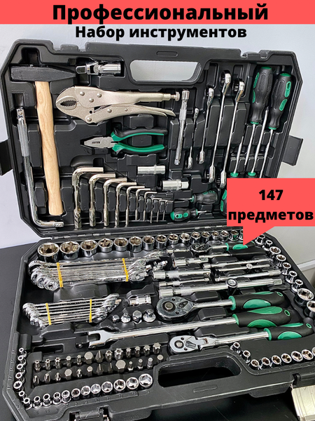 Большой набор инструментов для автомобиля и дома в кейсе. Продуманная комплектация и отличное качество всех составляющих набора для машины порадуют автомобилиста любого стажа и квалификации. Набор инструментов в чемодане выполнен из сплава хром-ванадия, что обеспечивает его твердость, отличное противостояние коррозии и надежность. В набор входит набор головок с трещоткой, держателей, шестигранник, шарниры, воротки, удлинители, адаптеры, биты, карданные шарниры, торцевые головки, отвертки для любой техники. Ремкомплект для шин комбинированных товаров для ремонта в гараж, изготовленные из прочной хром ванадиевой стали, все комплектующие наших инструментов имеют огромный срок службы. Твёрдость инстументов - 46-48 HRC. Основу набора иструментов в кейсе для дома автомобильный составляют держатели, трещотка и множество торцевых головок. Наш комплект в ящике из пластика (чемодане) такого качества - редкая удача, который отлично дополнит ваши автотовары, ему будет рад не только заядлый автомобилист, но и любой домашний мастер. Отличный подарок мужчине на день рождения, 23 февраля или Новый год! Цвет кейса может отличаться от представленного в карточке товара.