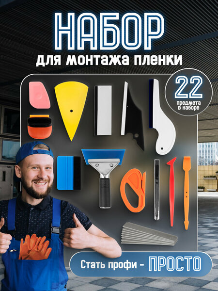 Теперь вы сможете своими руками и без дополнительных расходов обеспечить защиту вашего автомобиля, тонировку стекол или фар. Наклеить бронепленку, виниловые и карбоновые пленки на автомобиль. Выполнить внешний тюнинг. Произвести тонировку окон дома или нанести наклейки на авто. Данный набор подойдет для офиса и дома. Зеркальная или солнцезащитная пленка, установленная при помощи данного набора на стекла ваших окон защитит от солнца и любопытных глаз. Набор подойдет для установки самоклеящейся пленки на мебель или прозрачных пленок на ваши гаджеты. Инструменты найдут применение для декоративных работ и творческих занятий. РАКЕЛЬ гибкий - отличный скребок для установки тонировочной пленки для окон, защитных пленок, наклейки на машину. Накладка из фетра дает возможность уверенно работать, не оставляя на пленке микроцарапин. Имеет среднюю гибкость. ВЫГОНКА водосгон с резиновым краем легко уберет остатки воды с поверхности стекла. Наклейка бронепленки на окна и кузов производится с обязательным применением выгонки. НОЖ СКАЛЬПЕЛЬ идеально подходит для точной и детальной резки, а также для художественной вырезки мелких элементов. БЕЗОПАСНЫЙ НОЖ - "улитка" применяется для легкой и ровной резки пленок, обоев, бумаги. ЧИЗЛЕР розовый - используется совместно с термофеном, для устранения пыли и микрочастиц мусора на клеевом слое под тонировочной плёнкой или бронепленой. Имеются СКРЕБКИ для окон ШПАТЕЛИ для труднодоступных мест. Сможете без проблем заправить пленку при оклейке мест вокруг логотипов и эмблем, на различных углах деталей, возле штапиков окон, а также при оклейке вогнутых частей, например вокруг фар и уплотнителей, в углублениях под ручками и т. д. Тонировка или поклейка пленок теперь станут легким и быстрым процессом, который вы сможете провести самостоятельно! Ключевые слова: Танировка, тонер, тонир, тонеровка, танеровка.