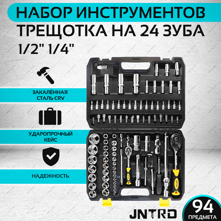Набор инструментов JNRTD - это высококачественный набор, состоящий из 94 предметов, который включает в себя биты, торцевые головки, гаечные ключи и другие аксессуары. Этот набор предназначен для слесарных, ремонтных и точных работ, что делает его незаменимым помощником как для профессионалов, так и для любителей. Набор поставляется в удобном кейсе, который обеспечивает безопасное хранение и транспортировку инструментов. В комплекте вы найдете трещотку, вороток для головок, бита-адаптер для торцевых головок, удлинитель для бит и головок, гибкий удлинитель для бит и головок, шарнир карданный для головок. Набор включает в себя 38 различных бит с прямым (SL), крестообразным (PH), крестообразным (PZ), шестигранным (H/HEX) и Torx (T/TX) шлицами. Посадка бит составляет 5/16". В комплекте также 45 торцевых головок с дюймовой и свечной посадкой, включая удлиненные и свечные головки. Наконечники головок и вставок выполнены в форме 6-гранника. Защита от срыва граней на инструментах гарантирует безопасность при использовании. В наборе также представлены 3 имбусовых ключа с шестигранным наконечником. Дополнительная информация: - Торцевые головки и принадлежности 1/2": Головки 6-гранные - 10, 11, 12, 13, 14, 15, 16, 17, 18, 19, 20, 21, 22, 23, 24, 27, 30, 32 мм - 18 шт; Головки 6-гранные удлиненные - 14, 15, 17, 19 мм - 4 шт; Головки 6-гранные свечные - 16, 21 мм - 2 шт; - Удлинители - 125, 250 мм - 2 шт; Трещотка - 260 мм, 24 зубца - 1 шт; Кардан - 70 мм - 1 шт; Скользящий адаптер - 凸 1/2" x 凹 3/8" - 1 шт; Адаптер для бит 6-гран