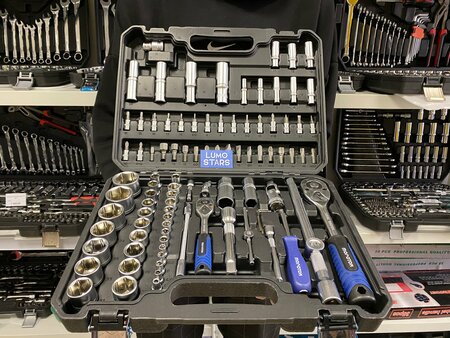 Набор инструментов - отличный подарок для любого мужчины. Он включает в себя ключи, головки, торцевые предметы, удлинители и другие аксессуары, необходимые для ремонта автомобилей и дома. Кроме того, в комплекте имеется удобный кейс для хранения и транспортировки всех инструментов. Этот автомобильный набор инструментов изготовлен из прочной хромованадиевой стали и обладает высоким качеством, что позволяет использовать его для выполнения различных работ. Он может стать надежным помощником в гараже, на даче, или велосипедной мастерской. Комплект также включает в себя шестигранники, рожковые головки и многое другое. Независимо от того, нужен ли он вам для работы или в качестве подарка другу, этот комплект инструментов будет отличным выбором, давая вам возможность справиться с различными задачами, как профессиональным мастером, так и любителем. Название цвета черный Комплектация "Головки торцевые 1/2" (18 шт.): 10, 11, 12, 13, 14, 15, 16, 17, 18, 19, 20, 21, 22, 23, 24, 27, 30, 32 мм; головки торцевые 1/4" (13 шт.): 4, 4.5, 5, 5.5, 6, 7, 8, 9, 10, 11, 12, 13, 14 мм; удлиненные головки 1/2" (4 шт.): 14, 15, 17, 19 мм; удлиненные головки 1/4" (8 шт.): 6, 7, 8, 9, 10, 11, 12, 13 мм; головки на свечу зажигания 1/2" (2 шт.): L=16 мм и L=21 мм; Ключ трещоточный реверсивный с быстрым сбросом 1/4" 24 зубчика 150 мм; Ключ трещоточный реверсивный с быстрым сбросом 1/2" 24 зубчика 250 мм; удлинитель 1/4" (2 шт.): L=100 мм и L=50 мм; Удлинитель гибкий 1/4", L=150 мм; Стержень поворотный со смещаемым торцевым ключом 1/4", L=114 мм; удлинитель/стержень поворотный со смещаемым торцевым ключом 1/2", L=250 мм; удлинитель 1/2", L=125 мм; Отвертка-вороток 1/4", L=150 мм; Карданный шарнир 1/4"; Карданный шарнир 1/2"; переходник 1/2" на биту 5/16"; биты 1/4" (17 шт.): T8, T10, T15, T20, T25, T30, H3, H4, H5, H6, PH3, PH4, SL4, SL5.5, SL7, PZ1, PZ2; биты 5/16" (15 шт.): H8, H10, H12, H14, P3, PH4, SL8, SL10, SL12, PZ3, PZ4, T40, T45, T50, T55; ключи шестигранные (3 шт.): 1.5, 2, 2.5 мм."