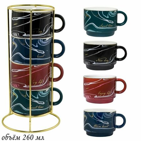 Набор кружек - 4 шт. Подставка для кружек - 1 шт. Подарочная упаковка - 1шт.