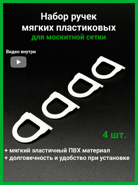 Набор из 4 мягких пластиковых белых ручек для ремонта противомоскитной сетки. Вы сможете самостоятельно в домашних условиях починить москитную сетку. Удобство данных ручек заключается в том, что они сделаны из мягкого ПВХ материала, что позволяет легче устанавливать москитную сетку в окно, также эти ручки более долговечны. Вы сможете самостоятельно в домашних условиях отремонтировать сетку - без проблем замените ручки на раме. В итоге Ваша старая сетка станет абсолютно новой! Сетка москитная от комаров окна мух маскитная пластиковые антимоскитная ремонта крепление насекомых уголок антипыль защитная балкон набор ручки противомоскитная универсальная маскитные камаров комплект защита мошек ремкомплект сборки оконная ремонтный антимаскитная комар комплектующие фиксация летающих москитка маскитка каморов антимошка антимуха москито мошкары фурнитура противомаскитная антимоскит
