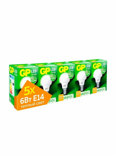 Светодиодные лампочки бренда GP станут незаменимым аксессуаром для вашего дома, подарят ему яркий свет и добавят уют в каждую комнату. Это долговечные лампы с низким потреблением энергии и тёплым источником интерьерного света. Они способны сэкономить до 90% электроэнергии, а их срок службы достигает до 15 лет. Такой результат недосягаем для обычных ламп накаливания. Яркость 6 Вольт LED лампы эквивалентна уровню мощности освещения 45 Вт. А стандартный универсальный цоколь формы E14 подойдет к множеству осветительных приборов, используется практически повсеместно: в доме, офисе, на даче. Лампочки загораются мгновенно, без пауз, в отличие от предыдущих энергосберегающих аналогов. Освещение остается ровным даже при колебаниях в сети. Свет не пульсирует и комфортен для глаз. Лампы излучают холодный свет с цветовой температурой 2700 кельвинов. Колба модели отличается повышенной прочностью. Лампа со светодиодами не расколется при падении с высоты человеческого роста, не повредится от встрясок и скачков напряжения в электросети, выдержит перепады температур. Обжечься о нее невозможно – светящие источники практически не нагреваются. Диодная лампа экологически чиста – при её производстве не используются вредные примеси и тяжёлые металлы, типа ртути. Изделие не испускает вредное излучение. Мощные лампочки с внешним световым эффектом и теплым цветом идеально сочетаются с любыми потолками, дизайнерским стилем и интерьером. Потолочная лампа обеспечит равномерное и спокойно освещение в вашей комнате, ванной или в другом помещении. С такой техникой вы получаете бытовой, комнатный, кухонный и домашний рассеиватель света. Мы предлагаем комплект из 5 штук товаров. Комплектация специально подобрана, чтобы обеспечить достаточное количество light для вашей люстры на кухне, в зале, гостиной и даже для туалета и ванной. Создайте атмосферу расслабления и отдыха с нашими цветовыми лампочками LED, идеально подходящими для дневного и вечернего времени. С ними комфортно работать и отдыхать