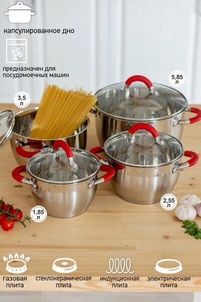 Набор кастрюль со стеклянными крышками ASTIX SCS-018 — это набор посуды для кухни из высококачественной нержавеющей стали, которая отвечает всем параметрам ГОСТ. После того, как Вы закончите готовить, набор легко очищать под горячей водой, так же можно мыть в посудомоечной машине. Удобные ручки. Крышки в наборе выполнены из термостойкого стекла с отверстием для выпуска пара. Подходит для использования на всех типах кухонных плит: для керамической плиты, для газовой плиты, для индукционной плиты, электрической плиты. В набор входит: Кастрюля с крышкой объем 1.85 л. Кастрюля с крышкой объем 2,55 л. Кастрюля с крышкой объем 3,5 л. Кастрюля с крышкой объем 5,85 л. Сделайте себе и близким отличный подарок, купите качественный набор столовой посуды ASTIX! Посуда для дома - оригинальный подарок подруге, маме, бабушке, коллеге, любимой жене, женщине, начальнице, начальнику, на День Рождения, Татьянин день, новоселье, свадьбу, 8 марта, 23 февраля. Вы так же могли искать: набор кастрюль; набор кастрюль из нержавеющей стали; набор кастрюль из нержавеющей стали с крышками; набор кастрюль с крышками; набор кастрюль эмалированных; набор посуды; набор посуды для пикника; набор посуды новогодний; набор посуды столовой; набор посуды туристический; новогодний набор посуды; подарочный набор посуды; посуда набор кастрюль; столовый набор посуды; термо кастрюли; термо кастрюля; термокастрюли; термокастрюля; термокастрюля для еды; термопосуда; термопосуда для второго; термопосуда для еды; подарок на новый год женщине