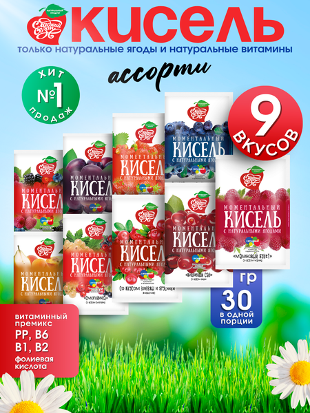 Набор киселей от ПК "Партнер" "Сладкий сезон" - это идеальный выбор для тех, кто ценит здоровый образ жизни и хочет наслаждаться вкусом любимых ягод и фруктов в любое время. В этом наборе вы найдете 9 различных вкусов быстрорастворимого киселя, каждый из которых обладает неповторимым ароматом и вкусом. В составе киселя только натуральные ингредиенты и витаминный премикс, что делает его не только вкусным, но и полезным для здоровья. Кроме того, набор киселей "Сладкий сезон" удобно брать с собой на работу или учебу, чтобы всегда иметь под рукой вкусный и питательный перекус. Каждый вкус киселя представлен в индивидуальной упаковке, что позволяет сохранить свежесть и аромат продукта на протяжении всего срока годности. Кроме того, упаковка выполнена из бумаги, что является экологичным и удобным материалом для хранения и транспортировки. Набор киселей быстрорастворимых от ПК "Партнер" станет отличным выбором для тех, кто хочет наслаждаться вкусом и пользой ягод и фруктов без лишних калорий и вредных добавок. Попробуйте все вкусы и выберите свой любимый!