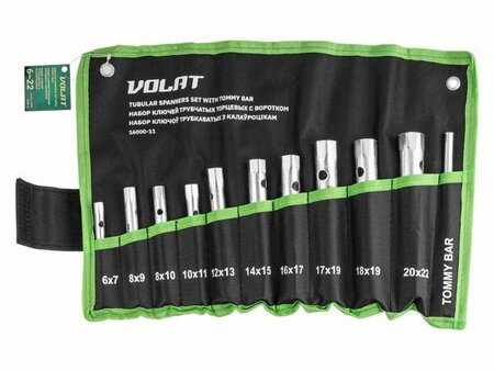 Набор ключей трубчатых торцевых с воротком 11 предметов ВОЛАТ (на полотне) (16000-11)