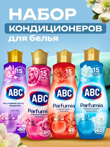 Набор кондиционеров-концентратов для белья ABC Parfumia - это парфюмированный продукт, который подходит для всех видов тканей. Произведенный в Турции, этот продукт является гарантией высокого качества и нежности вашей одежды при стирке и ополаскивании. Кондиционер-ополаскиватель выпускается в жидкой форме и упакован в канистру объемом 1,4 литра. Одной упаковки хватает на 60 стирок, что делает его экономичным выбором. Уникальная эко-формула ABC кондиционера придает мягкость тканям, делает их приятными на ощупь и облегчает процесс глажки. Благодаря таинственному цветочному аромату, ваше белье будет долго радовать вас свежестью и приятным ароматом. Парфюмированный кондиционер-ополаскиватель обладает антистатическими свойствами, что делает носку одежды приятной и комфортной. Продукция ABC экологически безопасна и предлагает отличное качество по доступной цене. В набор входят 4 упаковки по 1,4 литра каждая, что составляет в общей сложности 5,76 литра продукта.