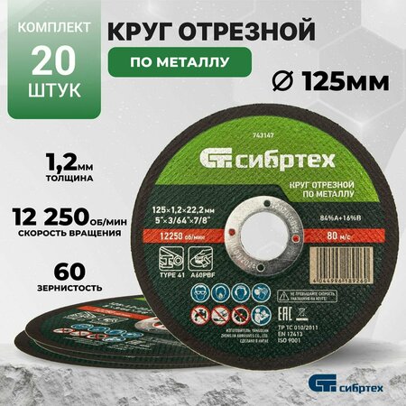 Набор кругов по металлу Сибртех 84%A+16%B 743137-20, 125 х 1,2 мм, устанавливаются на УШМ с посадочным размером 22,2 мм. С их помощью выполняется сухая резка углеродистых сталей. Круг пригодится частным мастерам для проведения ремонтных работ дома или в гараже. 2-слойная усиленная сетка обеспечивает безопасность работы, т. к. повышает стойкость круга к разрыву. Среднетвердая бакелитовая связка с упрочняющими элементами гарантирует высокий ресурс и износостойкость круга. Круг толщиной 1,2 мм легко и аккуратно режет материалы, обеспечивает получение ровного среза без дефектов.