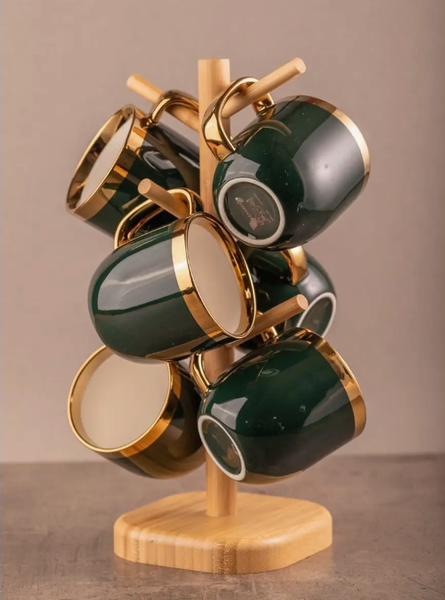 Чайный набор из 6 фарфоровых кружек на деревянной подставке и рассчитан на 6 персон. Столовая посуда очень высокого качества, производится по новейшим технологиям из лучшего немецкого сырья для фарфора. Большие однотонные чашки, вместимостью 300 мл. Подойдут для чая и кофе, может латте или эспрессо. Комплект надежно упакован и поставляется в подарочной упаковке. Отличный подарок на каждый день. Посуда изысканная и праздничная доставит эстетическое удовольствие в пользовании и в уходе. Легко моется обычными средствами и посудомоечной машине (ПММ). Чашки из фарфора нельзя греть в микроволновке. Этот кухонный инвентарь всегда пригодится на семейное торжество. Дома необычная посуда послужит красивым декором для кухни, столовой. Поставьте кружки на стол или полку, экономят место для хранения. Стильный комплект из фарфора обратит интерьер в атмосферу праздника, наполнит дачный дом уютом, а так же для кухни и просто для себя и ежедневного пользования.