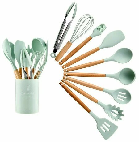 Набор кухонных принадлежностей, 12 силиконовых предметов с деревянной ручной