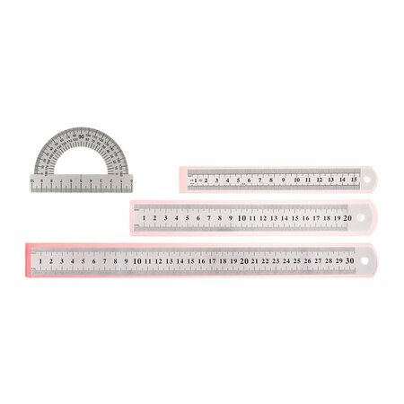 Набор металлических линеек с транспортиром — профессиональный инструмент для черчения Профессиональный комплект включает 4 незаменимых инструмента для точных измерений: три металлические линейки длиной 15 см, 20 см и 30 см, а также функциональный транспортир. Высококачественные материалы гарантируют долговечность и надёжность в использовании. Металлические линейки отличаются прочностью и устойчивостью к механическим воздействиям, что особенно важно при регулярных чертёжных работах. Практичный дизайн в сером цвете гармонично вписывается в рабочее пространство, не отвлекая внимание от чертежа. Компактные размеры инструментов позволяют удобно хранить их в пенале или ящике стола. Универсальное применение набора делает его незаменимым помощником для: