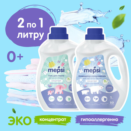Набор MEPSI гель для стирки 1л. и кондиционер ополаскиватель 1л. (2 уп по 1 л)