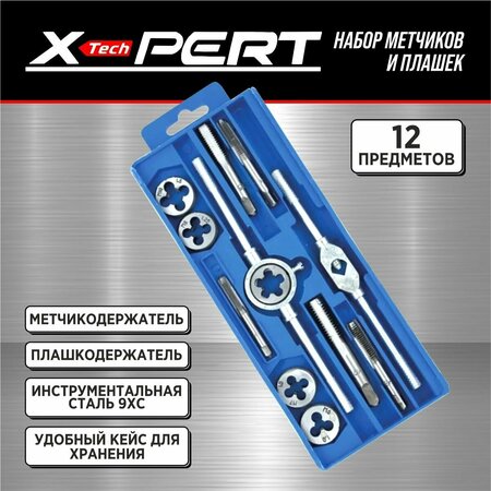 Набор метчиков и плашек X-PERT 12 предметов для создания внутренней резьбы