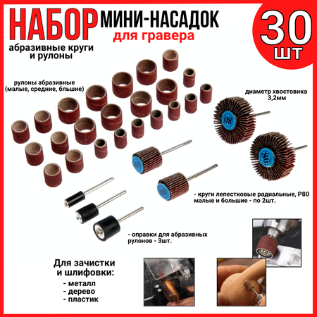 Набор мини-насадок для гравера включает в себя абразивные круги и рулоны с оправками диаметром 3.2 мм. В комплекте 30 предметов, что позволяет выполнять широкий спектр работ по обработке различных материалов, таких как дерево, камень, металл и пластик. Зернистость абразивных кругов и рулонов составляет 80 P, что обеспечивает высокую степень очистки и гладкость поверхности. Набор поставляется в удобной упаковке, что облегчает хранение и транспортировку насадок. Длина насадки составляет 40 мм, что позволяет работать с различными поверхностями и материалами. Выбирая набор мини-насадок для гравера, вы получаете качественный и надежный инструмент для выполнения широкого спектра работ по обработке различных материалов.
