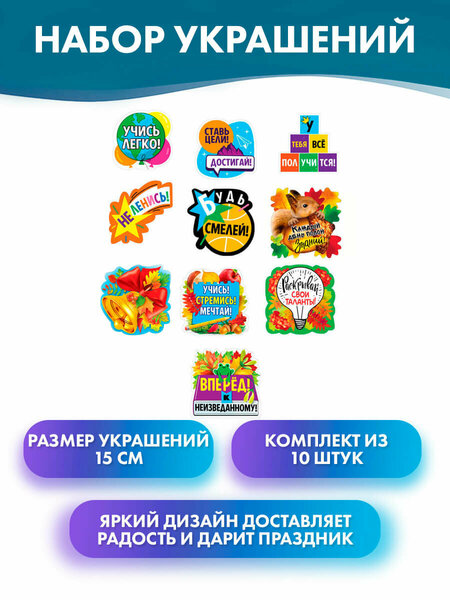 Набор мини плакатов "Мотивация", 15х15 см, 10 штук, бумажные украшения на 1 сентября, день знаний