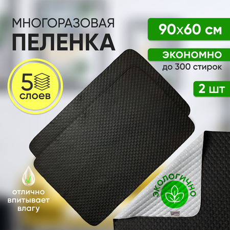 Многоразовые пеленки для собак и для кошек 90х60см, 2 штуки в комплекте, цвет черный