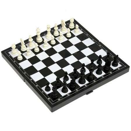 В набор входят сразу три настольные игры: шахматы, шашки и нарды. Игра станет великолепным подарком для любого взрослого и ребенка, будет способствовать развитию у него математической логики, абстрактного мышления и усидчивости. В комплекте: игровое поле (кейс с 2-мя вкладышами для игры в шашки, шахматы), шахматные фигуры (16 черных, 16 белых), шашки (14 белых, 14черных фигур), 2 кубика. Для удобства использования фигурки снабжены магнитной основой. Размер игрового поля в собранном виде 19х10 см. В разобранном виде 19х19 см. Изготовлено из полимерных материалов, в том числе с магнитными элементами.