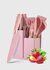 Комментарий: Вопрос продавцу,чем же отмыть пятно на разделочной доске?в целом понравилось,отличный набор,всё необходимое что необходимо на кухне.лезвие ножей острое,Удобная подставка,пластмассовая,но прочная.разделочная доска тоже пластмасса,не гладкая,матовая.Утварь силиконовая упругая,а ручка из дерева,гладкая.Решили проверить покрытие на ножах,поточили точилкой ручной для ножей и камнем точильным,к нашему удивлению на покрытие ни царапинки.посмотрим что будет после многократного применения.Заказывала розовый под гарнитур кухонный,набор хорошо вписался в интерьер.у меня на фото цвет немного искаженный,так он немного ярче,красиво смотрится.
