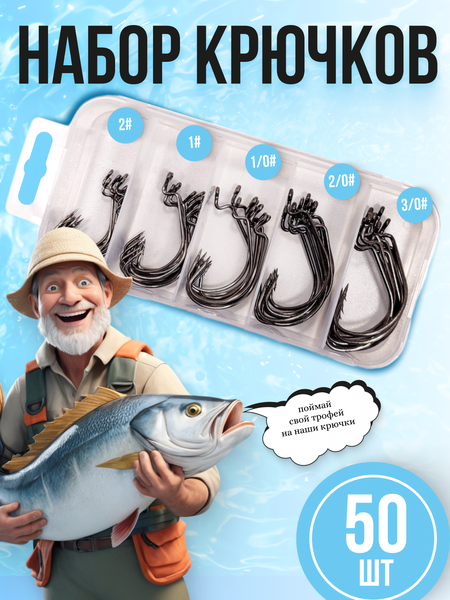Крючки рыболовные набор в пластиковом кейсе - идеальный выбор для любителей рыбалки! Этот крючок рыболовный специально разработан для эффективной ловли хищной рыбы, имеет изогнутую форму, которая обеспечивает уловистость и предотвращает соскальзывание приманки с крючка. Крючки рыболовные офсетные имеют особую форму, которая позволяет им проходить через самые заросшие участки водоема с минимальными зацепами. Благодаря этому, вы сможете исследовать больше мест и увеличить свои шансы на улов. Офсетные крючки для рыбалки изготавливают из высокоуглеродистой стали. Этот материал обладает высокой прочностью и устойчивостью к коррозии, что делает офсетный крючок долговечным и надёжным. Офсетный крючок для рыбалки используется для ловля щуки, судака, окуня и других хищных рыб. Пластиковый кейс, в котором находится набор крючков рыболовных, обеспечивает их безопасное хранение и переноску. Он защищает офсетные крючки для рыбалки от повреждений и позволяет держать их всегда под рукой. В наборе представлены офсетные крючки разных размеров, чтобы вы могли подобрать оптимальный вариант для различных приманок и условий ловли. Таким образом, данные рыболовные крючки подойдут как опытным рыболовам, так и новичкам, которые только начинают свое знакомство с офсетным видом крючков. Не упустите возможность приобрести этот практичный и функциональный набор офсетных крючков в пластиковом кейсе! С ним ваша рыбалка станет еще более успешной и приятной! Рыболовные крючки 2#- 10 штук; 1#-10 штук; 1/0#- 10 штук; 2/0#-10 штук; 3/0#-10 штук