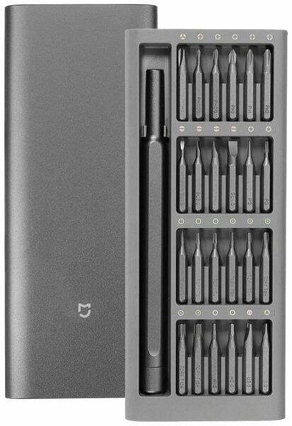 Отвертка с насадками MiJia Precision Screwdriver Set MiJia Precision Screwdriver Set - это алюминиевый винтоверт с высоким качеством и точностью исполнения, и 24 магнитными насадками в комплекте. Лучшие немецкие технологии Лучшие современные немецкие технологии воплотились в данном инструменте, что гарантирует его качество и продолжительную работу. Винтоверт, анодированный пенал и 24 насадки - потрясающий комплект. Удобный пенал для хранения Отвертка и биты поставляются в специальном анодированном и антикоррозионном пенале, который к тому же обладает прекрасным дизайном и за счет скругленных краев достаточно комфортно размещается в руке пользователя. 24 насадки в комплекте MiJia Precision Screwdriver Set включает в себя и 24 высокоточные магнитные насадки, которые выполнены из инструментальной стали и обеспечат достаточно длительный срок службы битов. Удобная рукоятка с колпачком Специальная рукоятка отвертки выполненная из анодированного алюминия, абсолютно не скользит в руках и оснащена специальным колпачком, для удобного вращения отвёртки с упором в ладонь. Благодаря такому механизму можно не перехватывать рукоятку и рука меньше устает. Идеальный выбор для многих устройств Ремонт в удовольствие MiJia Precision Screwdriver Set – прекрасный выбор как для бытового применения так и в профессиональной ремонтной деятельности. С помощью данного инструмента Вы сможете легко починить ноутбук, планшет, смартфон, часы и многие другие электронные устройства и девайсы повседневного использования. Все для удобства пользователя Тщательно продуманная форма рукоятки, эффективное противоскользящее покрытие и элегантный дизайн винтоверта обеспечивают максимально удобную и быструю работу с данным инструментом. Выбор профессионалов MiJia Precision Screwdriver Set – это прекрасное решение и отличный выбор, как для специалистов, которые занимаются ремонтом различных цифровых/электронных девайсов, так и для пользователей, которые хотят самостоятельно отремонтировать повседневно используемые устройства.