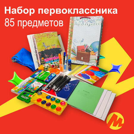 Набор первоклассника с 1 по 4 классы, 85 предметов. Для Мальчиков. В подарок свидетельство об окончании детсада.
