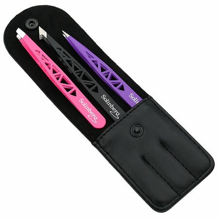 Набор пинцетов для бровей Solinberg 003Bз: удобство и качество Набор пинцетов Solinberg 003Bз включает в себя три пинцета ручной заточки: черный, розовый и фиолетовый. Изготовленные из высококачественной нержавеющей стали, пинцеты обеспечивают долговечность и надежность в использовании. Острые кончики пинцетов легко захватывают и удаляют даже самые тонкие волоски, делая процесс коррекции бровей быстрым и комфортным. Благодаря ручной заточке пинцетов, они обладают острыми кончиками, которые легко захватывают и удаляют даже самые тонкие волоски. Пинцеты косметические Solinberg 003B станут незаменимым инструментом для тех, кто ценит качество, удобство и эффективность в уходе за собой.