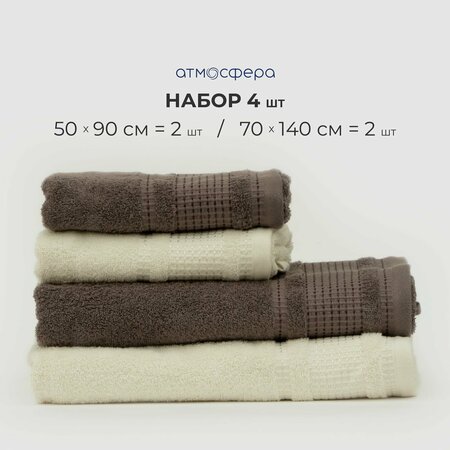 Молочное полотенце 50х90 см -1 шт;Кофейное полотенце 50х90 см - 1 шт;Молочное полотенце 70х140 см - 1 шт;Кофейное полотенце 70х140 см - 1 шт