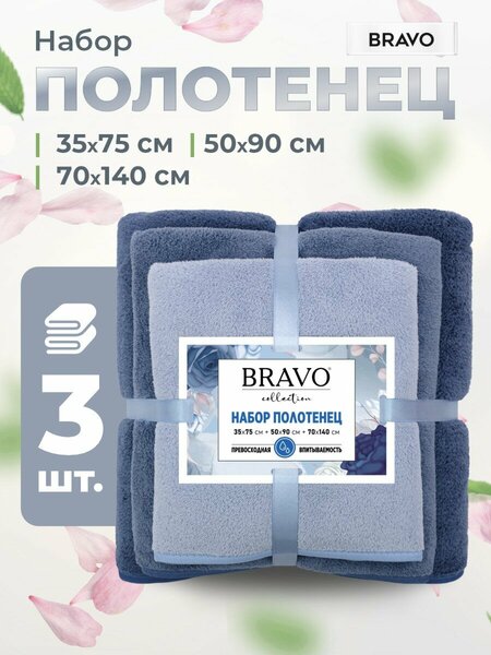 Набор полотенец из микрофибры Сванк 35*75 +50*90+ 70*140 см синий