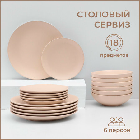 Столовый сервиз на 6 персон, состоящий из 18 предметов, выполнен из качественной керамики и оформлен в бежевом цвете. Сервиз включает в себя 6 десертных тарелок диаметром 19 см, 6 обеденных тарелок диаметром 27 см и 6 суповых тарелок объемом 700 мл и размером 18.5 × 5 см. Все изделия из набора можно мыть в посудомоечной машине и использовать в СВЧ-печи, что значительно облегчает уход за посудой и экономит ваше время. Классическая форма тарелок универсальна, она органично дополнит практически любой интерьер. Набор тарелок подходит для использования на любых мероприятиях, будь то семейный ужин или праздничный обед. Выбирая набор для кухни на 6 персон из 18 предметов, вы получаете качественный и стильный набор посуды, который станет незаменимым помощником на вашей кухне.