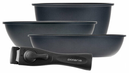 EasyKeep-4DG - просто готовить, удобно хранить! Набор посуды EasyKeep-4DG идеально подходит для использования в духовке, позволяет сэкономить место при хранении, его удобно мыть. DIAMANT 3X: высокопрочное внутреннее и внешнее антипригарное 3-х слойное покрытие с добавлением алмазной крошки. Надежность и долговечность! Посуда изготовлена из высококачественного кованого алюминия. Эргономичная бакелитовая съемная ручка с двойной защитой не нагревается и не скользит. Внутреннее высокопрочное антипригарное покрытие. Подходит для всех типов плит, включая индукцию. состав набора: - Глубокая сковорода 24 см – 2,5 л - Сковорода 26 см – 2,5 л - Ковш 18 см – 1,7 л. Для надёжной работы посуды Polaris на вашей индукционной плите, обязательно уточните в инструкции к плите минимальный допустимый диаметр дна посуды для каждой конфорки. Характеристики: Материал: Кованый алюминий Покрытие: Внутреннее высокопрочное антипригарное покрытие Типы плит: Все типы плит, включая индукционные Форма: Круглая Ручки: Эргономичная съемная ручка Цвет: Серый