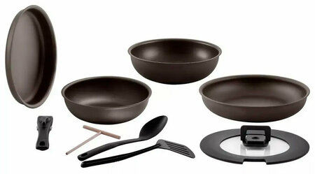 Посуда спроектирована таким образом, что элементы удобно складываются друг в друга. Это значительно экономит место на кухне и идеально подходит для небольших пространств или для людей, предпочитающих порядок.