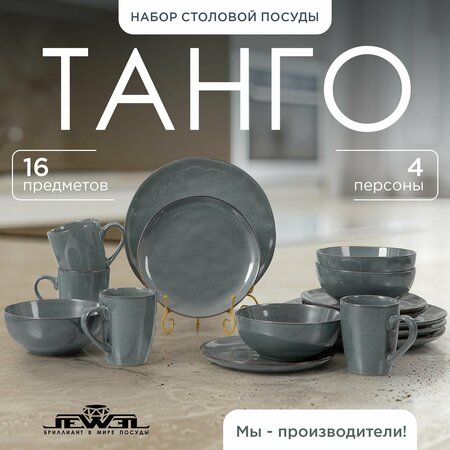 Сервиз столовый "Танго" 16 предметов JEWEL– идеальное решение для тех, кто ценит высокое качество и оригинальный дизайн. Этот набор посуды для кухни создан специально для того, чтобы удовлетворить все потребности вашей семьи или гостей во время обеда или ужина. Внимание! Цвет на фото может незначительно отличаться от реального цвета за счет многих факторов, таких как место съемки, освещения при съемке и самой цветопередачи фотоаппарата. В состав столового сервиза входят следующие предметы: