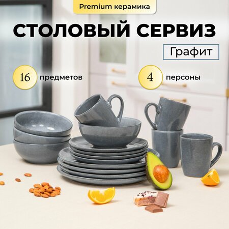 Сервиз столовый "Графит" 16 предметов JEWEL– идеальное решение для тех, кто ценит высокое качество и оригинальный дизайн. Этот подарочный набор для кухни создан специально для того, чтобы удовлетворить все потребности вашей семьи или гостей во время обеда или ужина. В состав столового сервиза входят следующие предметы: