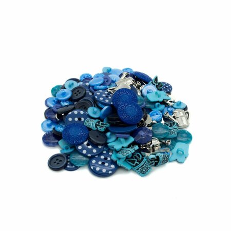 Набор пуговиц 'Сине-голубое ассорти' создан для любителей мастерить оригинальные поделки из подручных материалов. Россыпь разноцветных пластиковых пуговиц – основа для ваших творческих проектов. Несколько идей: – оформите пуговицами застежку на детской одежде; – украсьте детские вещи и аксессуары (сумки, головные уборы); – декорируйте авторскую открытку, обложку, блокнот в технике скрапбукинга; – используйте пуговицы с рисунком как часть композиции для декоративного панно; – расшейте пуговицами прихватку или рукавицу. Пуговицы упакованы в банку из твердого прозрачного пластика (ПЭТ) с откручивающейся крышкой. Это удобная упаковка, которую можно использовать многократно для хранения материалов для рукоделия, украшений и других предметов. В наборе: пуговицы пластиковые на прокол, на ножке, пуговицы фигурные, всего 150 штук; банка прозрачная ПЭТ, объем 150 мл; крышка белая винтовая, диаметр 58 мм.