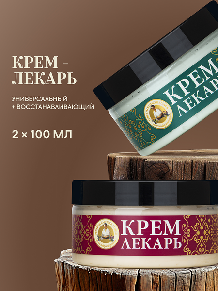 Рецепты бабушки Агафьи Набор: крем лекарь для тела, рук и ног увлажняющий питательный, Универсальный и Восстанавливающий от трещин 2 шт х 100 мл