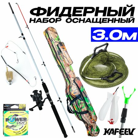 Фидерное удилище длиной 3 метра с тестом до 250 грамм оснащено безынерционной катушкой и плетёным шнуром. В комплекте идет фидер, катушка СВ3000, плетёный шнур диаметром от 0,18 до 0,30 миллиметра длиной 100 метров, а также одна кормушка «Ракета», садок для рыбалки и чехол длиной 150 сантиметров. Это удилище идеально подходит для ловли рыбы на дальних расстояниях и позволяет делать точные забросы благодаря своей длине и тесту. Безынерционная катушка обеспечивает плавный ход и надёжность при вываживании крупной рыбы, а плетёный шнур гарантирует высокую чувствительность и прочность. В наборе также есть стойка для удочек длиной 150 сантиметров, которые позволяют удобно установить удилище на берегу и избежать его падения или повреждения. Кормушка «Ракета» предназначена для быстрого погружения и равномерного распределения прикормки, что привлекает рыбу и увеличивает шансы на успешный клёв. Чехол длиной 150 сантиметров обеспечит безопасное хранение и транспортировку всех компонентов комплекта. В комплекте: