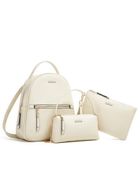 Набор рюкзак женский экокожа сумка и косметичка DP3568 белый - это стильный и функциональный комплект, который станет незаменимым аксессуаром для современной женщины. Рюкзак женский из экокожи, входящий в комплект, обладает вместительностью, достаточной для размещения планшета, документов, кошелька и других необходимых вещей. Благодаря полужесткому каркасу и молнии, рюкзак надежно закрывается и сохраняет содержимое в безопасности. В комплект также входят две сумки: кросс-боди и через плечо. Сумка через плечо оснащена удобными ручками и длинным регулируемым ремнем, что позволяет носить ее на плече или перекинуть через плечо. Косметичка или клатч для карт, входящие в комплект, подходят для особых случаев, когда вам нужно только самое необходимое. Набор рюкзак женский экокожа сумка и косметичка DP3568 белый станет отличным подарком для вашей мамы, жены или подруги, подчеркнув их стиль и вкус.